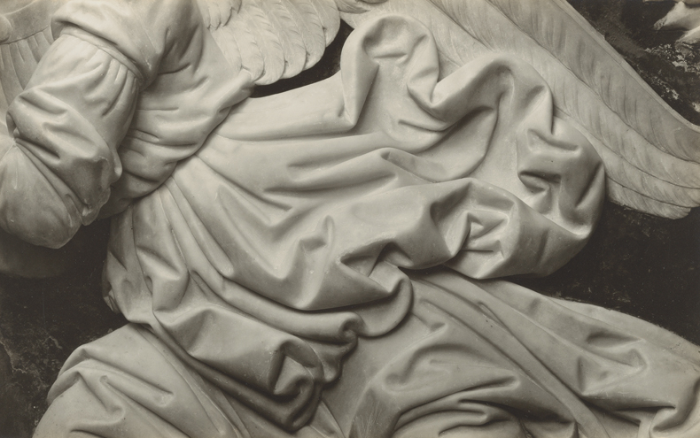 Clarence Kennedy, Lower Angel to Observer’s Right: Drapery below the Waist, 1930/1931, gelatin silver print, detail of Cardinal Niccolò Forteguerri Monument by Andrea del Verrocchio, Special Collections, Fine Arts Library, Harvard University