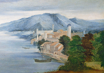 (right) Bassano del Grappa with Palladio's Bridge (detail), photograph by Leo J. Kasun