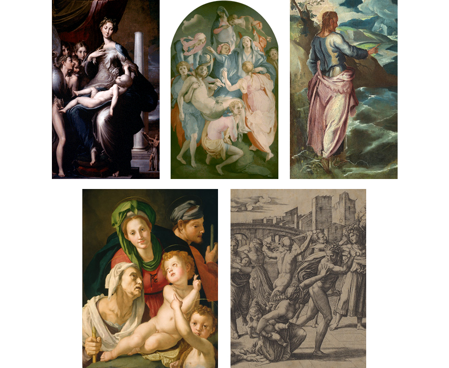 (top left) Pontormo, Deposition, 1526-1528, oil on panel, Capponi Chapel, Church of Santa Felicita, Florence
