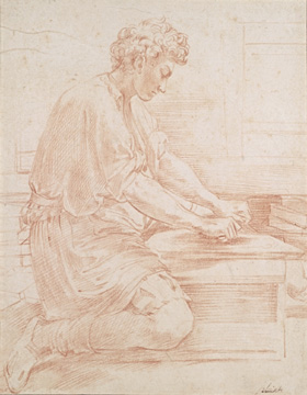 Parmigianino, A Painter's Assistant Grinding Pigments, 1535, chalk drawing, Victoria and Albert Museum, London