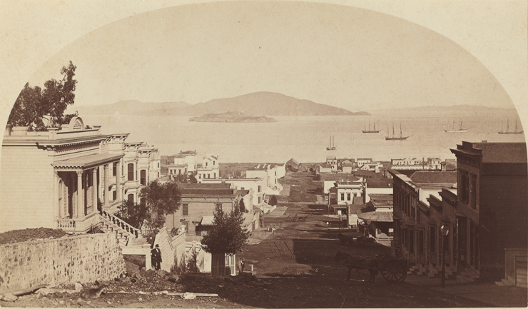 Carleton E. Watkins, Alcatraz Island and San Francisco Bay, Looking North, 1880s, albumen print, Gift of Mary and Dan Solomon and Patrons’ Permanent Fund, 2006.133.134