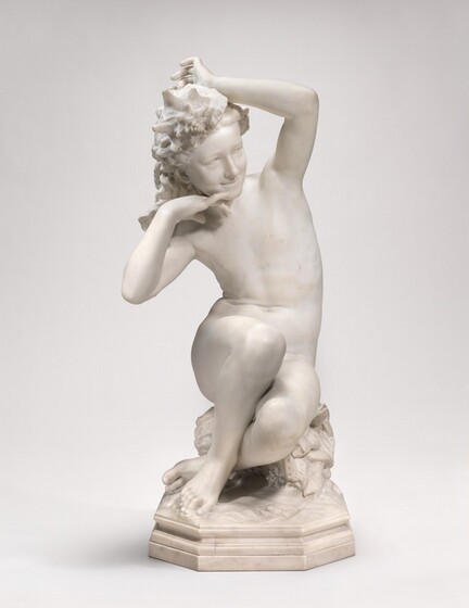 Carpeaux received many important public commissions, but, like other sculptors of his day, increasingly made uncommissioned works on speculation. Neapolitan Fisherboy, for example, was a subject Carpeaux had submitted in plaster to the French Academy while a student in Rome. He carved this marble version several years later, showing it eventually in the Salon exhibition of 1863. It was purchased, perhaps even before leaving Italy, for Napoleon III's empress, Eugènie. The work was enormously popular, and Carpeaux created a number of reproductions and variations in marble and bronze. Some years later, capitalizing on its success, he made the Girl with a Shell, also in the Gallery's collection, as a pendant.