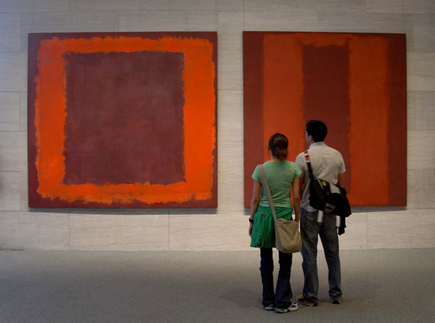 (right) Untitled (Seagram Mural sketch), 1958, oil and acrylic on canvas, Gift of The Mark Rothko Foundation, Inc. Copyright © 1997 Christopher Rothko and Kate Rothko Prizel, 1985.38.1
