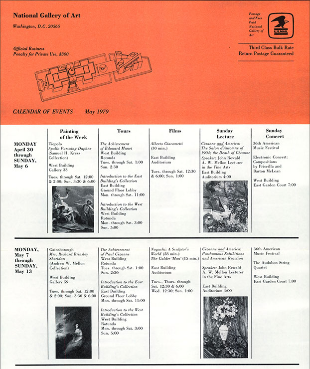 Front page of National Gallery of Art Calendar of Events, May 1979