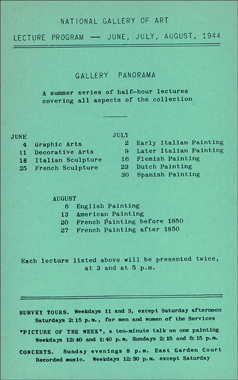 Front page of National Gallery of Art Calendar of Events, January 1948