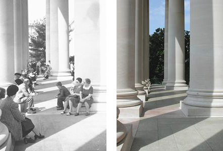 (left) View of the south porch of the West Building, 1941; photograph Jack Hyams