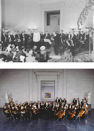 (top) Richard Bales and the National Gallery Orchestra in the East Garden Court, 1948