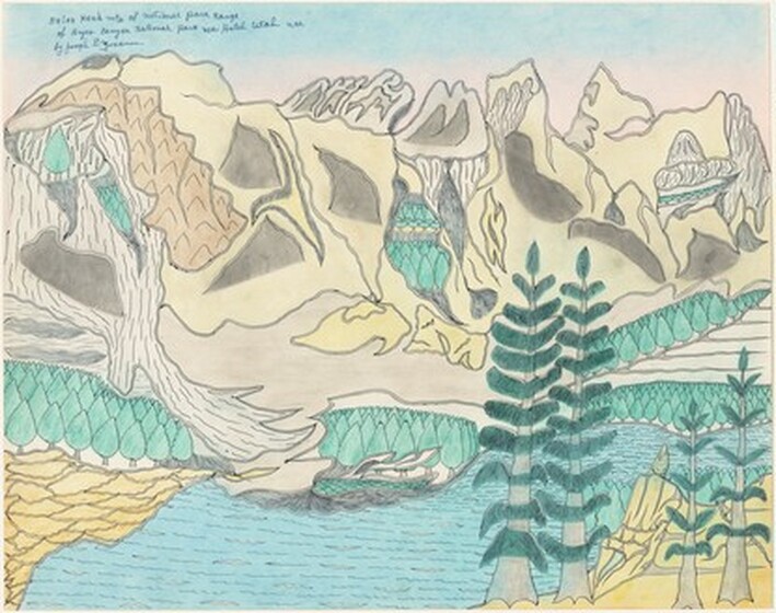 Joseph Yoakum (American, 1890–1972), Briar Head Mtn of National Park Range of Bryce Canyon National Park near Hatch, Utah U.S.A., c. 1969, blue-black and black ballpoint pen and colored pencil on paper, National Gallery of Art, Washington, Gift of the Collectors Committee and the Donald and Nancy de Laski Fund
