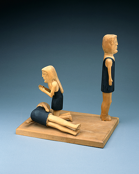 Edgar Tolson (American, 1904–1984), Cain Going into the World, from the Fall of Man series, 1970, carved wood with nails, paint, graphite, marker, and glue, Milwaukee Art Museum, The Michael and Julie Hall Collection of American Folk Art. Photo: Courtesy Milwaukee Art Museum