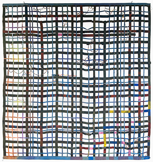 Alan Shields (American, 1944–2005), Shape-Up, 1976–1977, acrylic and thread and beads on canvas belting (double-sided), The Drawing Room Gallery, East Hampton. Photo by Gary Mamay