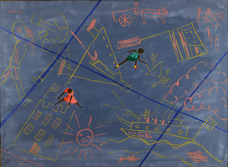 Jacob Lawrence (American, 1917–2000), Sidewalk Drawings, 1943, gouache on paper, Collection of Shahara Ahmad-Llewellyn. Image ©2017 The Jacob and Gwendolyn Knight Lawrence Foundation, Seattle / Artists Rights Society (ARS), New York