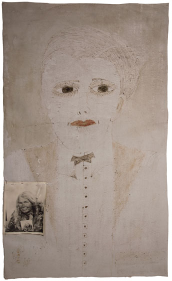 Lee Godie (American, 1908–1994), Prince Charming, c. 1975–1980, paint, ink, and gelatin silver print on canvas, Don Howlett and Lisa Stone