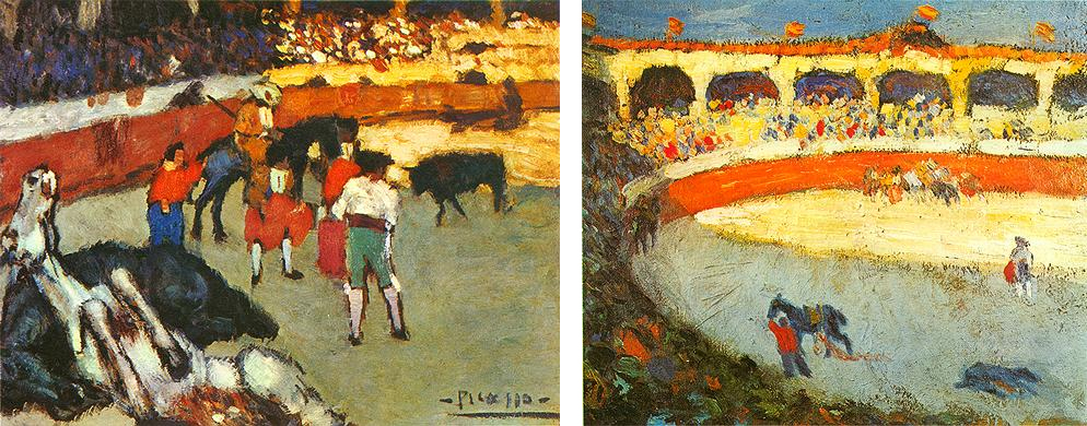 (right) Pablo Picasso, La Corrida, 1901, oil on canvas, private collection © 2012 Estate of Pablo Picasso/Artists Rights Society (ARS), New York