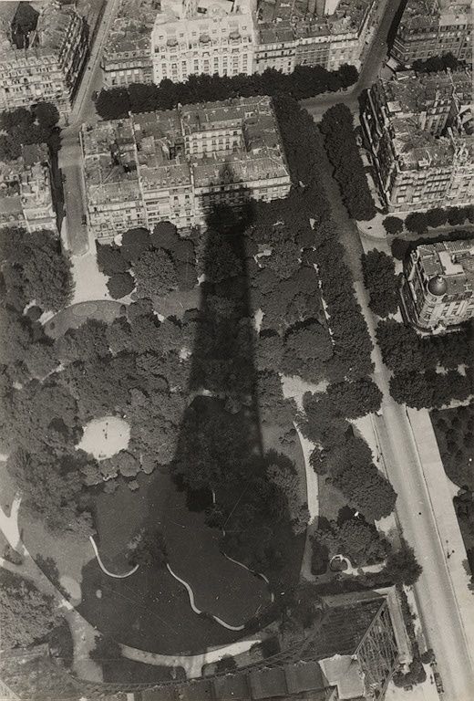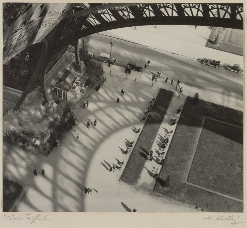 In 1929, Kertész as photographer and Brassaï as journalist collaborated on an article devoted to the fortieth anniversary of the tower’s construction. Rather than celebrating the structure’s technological complexity, Kertész’s photograph—originally published with the caption "The Ants"— focuses on the tiny figures that scurry between the shadows cast by the building’s intricate ironwork.