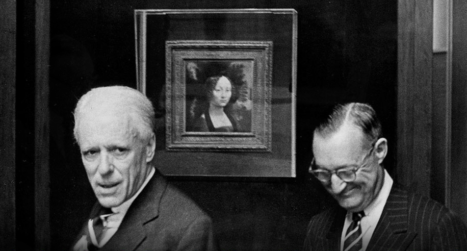 Paul Mellon and John Walker at the preview of Leonardo da Vinci's "Ginevra de' Benci," March 16, 1967