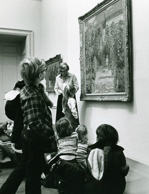 School group viewing Claude Monet's "The Artist's Garden at Vétheuil," 1880, from the Ailsa Mellon Bruce Collection