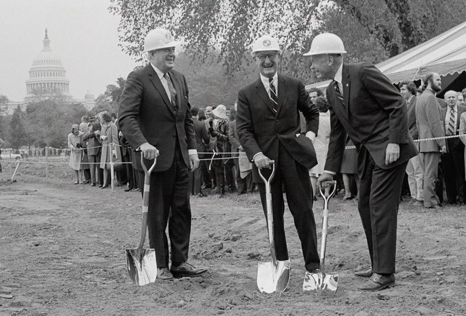 Paul Mellon (center) at the ground-breaking ceremony for the East Building, May 6, 1971