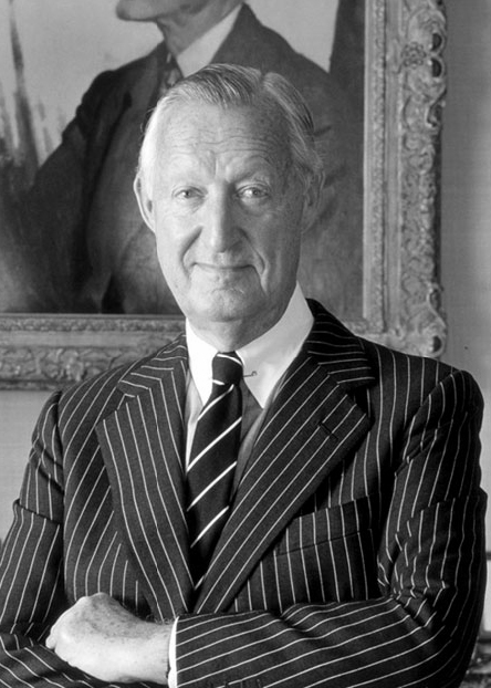 Paul Mellon in front of a portrait of his father, Andrew W. Mellon, by Sir William Orpen (1924), Photograph by H. Groskinsky