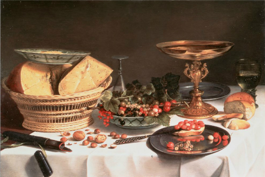 Fruit Still Life with Basket of Cheese, c.1624-1625, oil on panel, 50 x 73 cm (19 11/16 x 28 3/4 in.), Private collection, on loan to the Frans Hals Museum, Haarlem