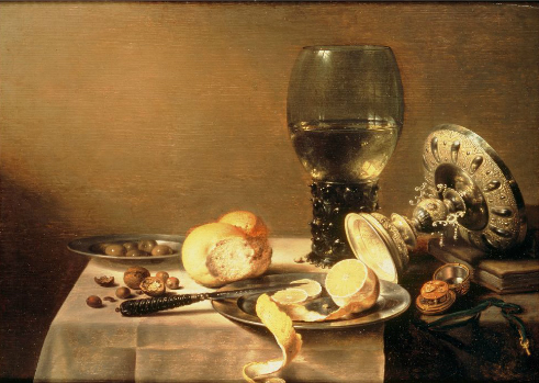 Still Life with Roemer, Tazza, and Watch, 1636, oil on panel, 44 x 61 cm (17 5/16 x 24 in.), Royal Picture Gallery, Mauritshuis, The Hague, on long-term loan from the Friends of the Mauritshuis Foundation (Gift of Willem Baron van Dedem)