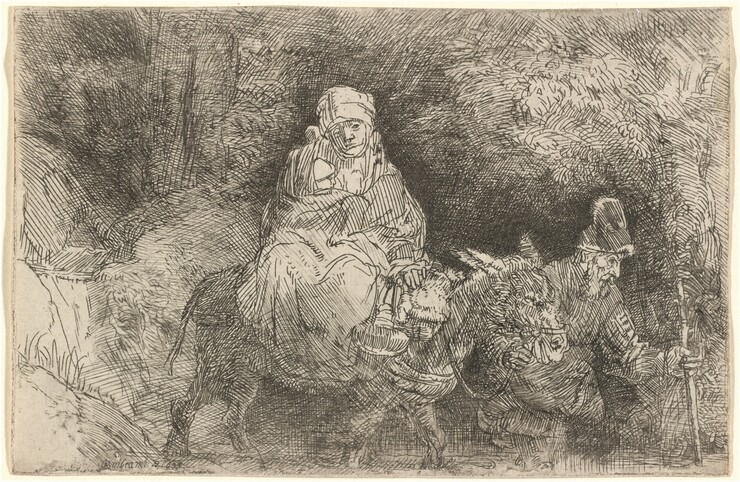 The Flight into Egypt: Crossing a Brook, 1654, etching and drypoint, Rosenwald Collection, 1943.3.9113