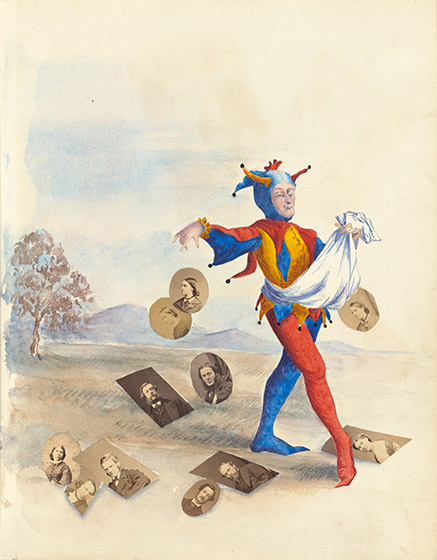 In mid-nineteenth-century Britain, upper-class women frequently created collages out of small, commercial portrait photographs of family and friends, cutting out heads and figures and pasting them onto paper that they then embellished with drawings and watercolor. Made decades before the twentieth-century avant-garde discovered the provocative allure of photocollage, these inventive, witty, and whimsical pictures undermined the standards of respectability seen in much studio portrait photography of the time.
