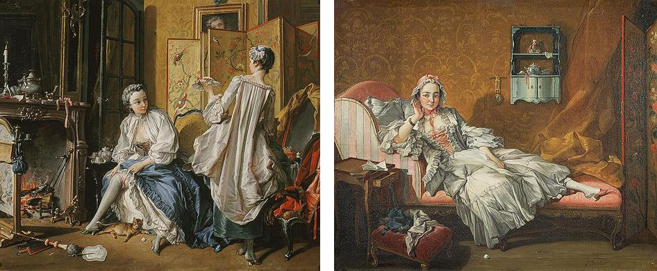 (left) François Boucher, A Lady Fastening Her Garter (La Toilette), 1742, Museo Thyssen-Bornemisza, Madrid