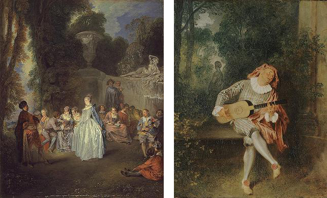 (left) Jean-Antoine Watteau, Venetian Pleasures, c. 1718 - 1719, National Gallery of Scotland, Edinburgh