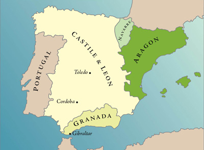 For most of the fifteenth century, Spain was divided into the kingdoms of Castile and Leon, Aragon, and Navarre, with the Muslim emirate of Granada in the south. The Muslim presence in Spain dates to the 8th century, when it rapidly extended over most of the Iberian Peninsula. The Christian reconquest of Toledo in 1085 reduced al-Andalus to the southern half of the country.