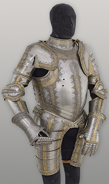 Master of the Castle, Italian, documented 1590–1620, Armor of Emmanuel Philibert of Savoy, Milan, c. 1606, etched and gilt steel, Patrimonio Nacional, Real Armería, Madrid