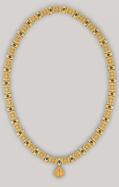 Narciso Soria, silversmith and jeweler, Spanish, documented between 1800 and 1854, Collar of the Order of the Golden Fleece, Madrid, 1854, Gold and gilt silver, blue and white enamel, Patrimonio Nacional, Palacio Real de Madrid