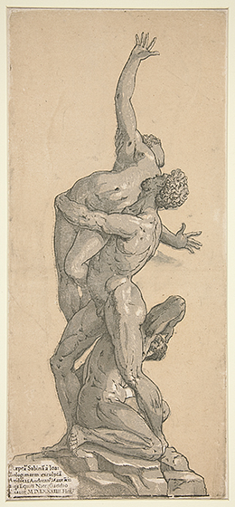 Andrea Andreani, Rape of a Sabine, after Giambologna, 1584, chiaroscuro woodcut from five blocks, state ii/ii (?), Yale University Art Gallery, Bequest of Lydia Evans Tunnard, 1981.60.1