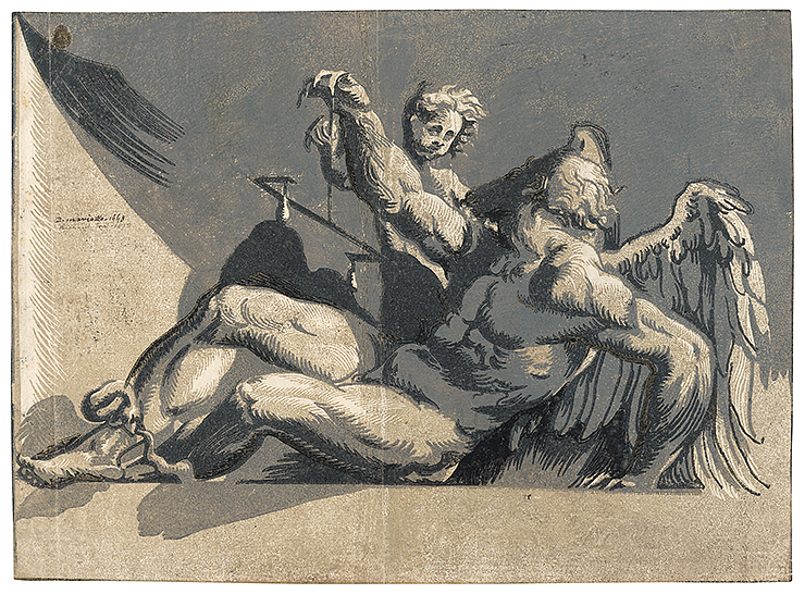 Niccolò Vicentino, Saturn, after Pordenone, 1540s, chiaroscuro woodcut from four blocks, state i/iii, The British Museum, London, 1858,0417.1577