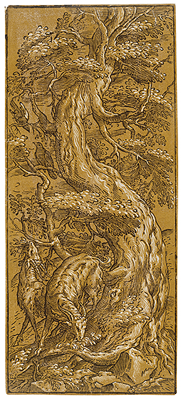 Nicolò Boldrini, Tree with Two Goats, late 1560s, chiaroscuro woodcut from two blocks, The British Museum, London, 1856,0614.140