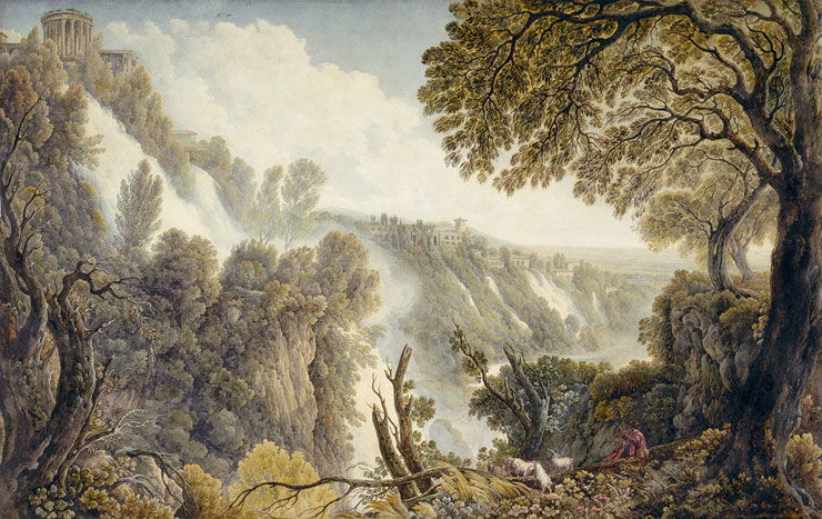 Louis Ducros, Swiss, 1748–1810, The Waterfalls at Tivoli, c. 1790, watercolor with gouache and gum arabic and touches of pen and ink over graphite, on laid paper, Rudolf and Lore Heinemann Fund, 2002