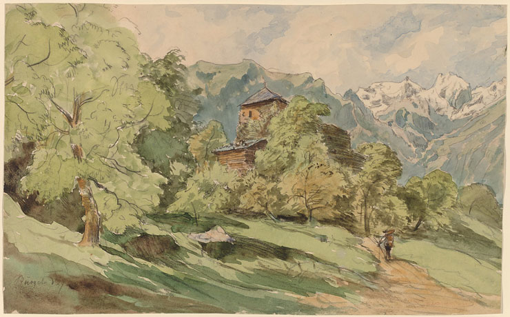 Carl Wagner, German, 1796–1867, The Castle of Bürglen with the Alps Beyond, 1862, watercolor and black chalk on wove paper, Purchased as the Gift of Alexander M. and Judith W. Laughlin, 2011