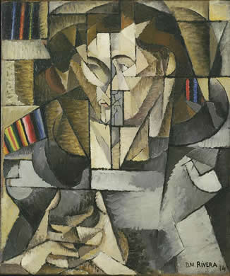 In 1909 Rivera embarked on an itinerary of art study in Europe that included visits to Paris, London, and Belgium. In Bruges he met the Russian painter Angelina Beloff, who soon became his companion and common-law wife, and together they moved to Paris. (The two remained a couple until Rivera departed for Mexico in 1921. He married the Mexican painter Frida Kahlo in 1929.) Rivera returned to Mexico for a one-man exhibition of his work that opened on November 20, 1910, a date notorious for its association with the start of the Mexican Revolution. Shortly after the December 20 close of his exhibition, Rivera again departed for Europe; it would be more than a decade--and following the end of the Revolution--before he returned to Mexico. Years later, embarrassed by his lack of revolutionary credentials, the artist claimed to have participated in the fighting, boasting that he had joined Emiliano Zapata's peasant forces and even plotted to kill President Díaz. In truth, Rivera and Beloff spent the next few years working in Spain and France, engaged with neither the strife in Mexico nor with the cubist revolution in art that had been initiated by Picasso and Braque. As his close friend and the subject of Portrait of Martín Luis Guzmán would write, Rivera "arrived calmly and late" to cubism.