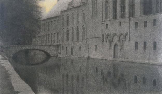 Fernand Khnopff, Memory of Flanders: A Canal, c. 1904, conté crayon over graphite, Hearn Family Trust