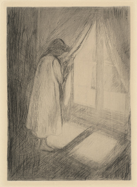 Edvard Munch, Girl at Window (Madchen im Hemd am Fenster), 1894, etching, State v/vi, Rosenwald Collection, 1943.3.9022