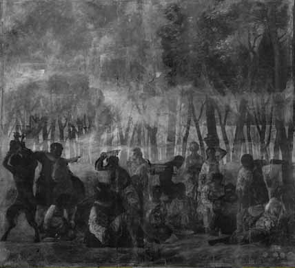 X-radiograph of The Feast of the Gods showing Bellini's original intentions for the background.