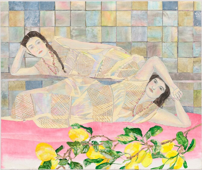 María Berrío, A Sunburst Restrained, 2019, collage with Japanese paper and watercolor on canvas, Gift of Erika and John Toussaint, 2020.2.1