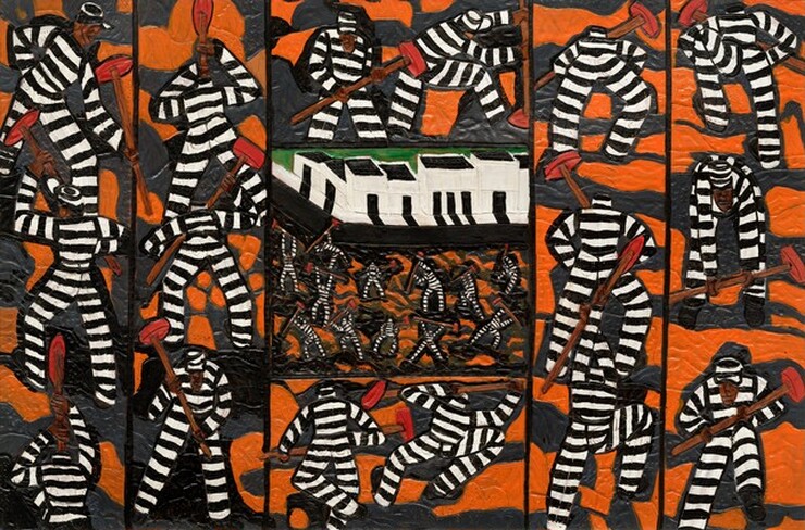 Winfred Rembert, G.S.P. Reidsville, 2013, dye on carved and tooled leather, Gift of Funds from Glenstone Foundation, 2022.37.1