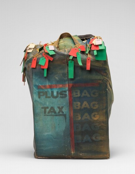 John Outterbridge, Plus Tax: Shopping Bag Society, Rag Man Series, 1971, mixed media, Purchased with funds from The Ahmanson Foundation and Howard and Roberta Ahmanson, 2020.12.1