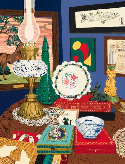 Hilary Pecis, Flea Market, 2021, acrylic on linen, Gift of George Frederick Mead Merck, 2021.56.1