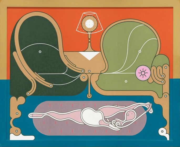 Jonas Wood, Helen's Room, 2017, oil and acrylic on canvas, Purchased as the Gift of Stuart Barr, Sarah MacKey, and TSL, a Private Asian Collector, 2020.13.1