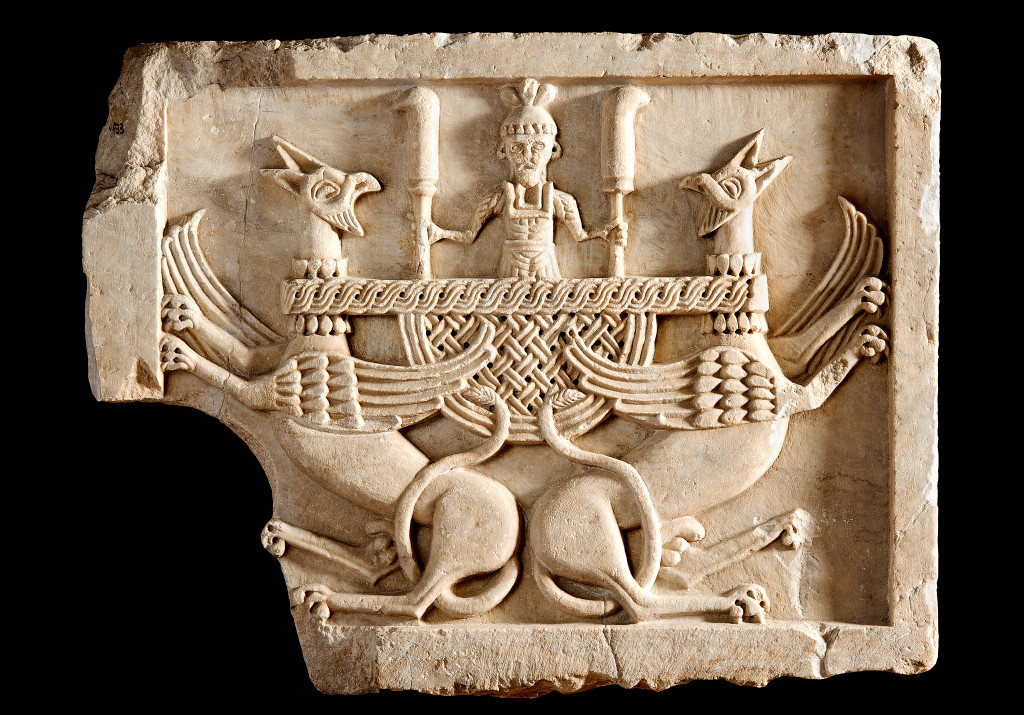 Plaque with the ascension of Alexander the Great, 12th century, marble, Chalkis, Karababa Fortress Sculpture Display