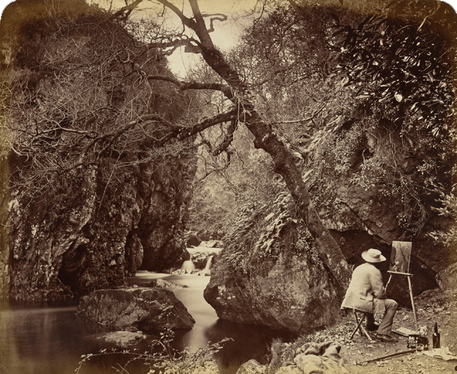 Here a photographer captured a scene in Ireland with a painter depicting the same site. Such interactions were not uncommon in these decades.