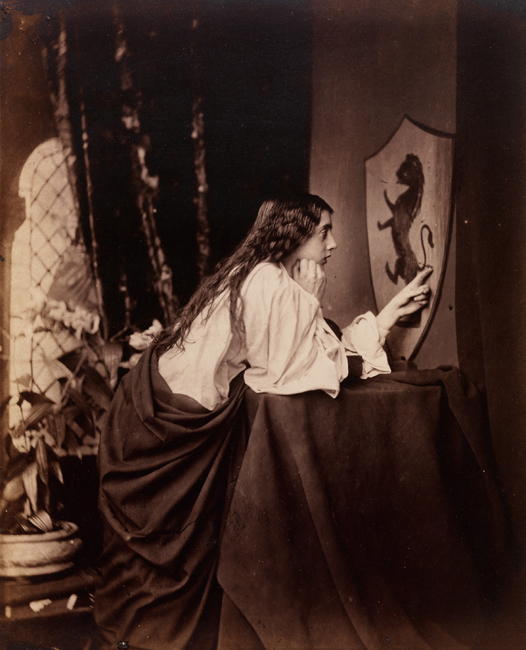 A hallmark of the Pre-Raphaelite style was a preference for poetic subjects drawn from literature, history, religion, and mythology. Shakespearean plays, poems by Alfred Tennyson, and tales from King Arthur and the Knights of the Round Table were particular favorites. Pre-Raphaelite artists focused on intimate, emotional moments and strove for historical accuracy by carefully researching period costumes and settings. Photographers, too, turned to these sources, staging scenes in an effort to demonstrate that photography could equal painting in narrative potential.