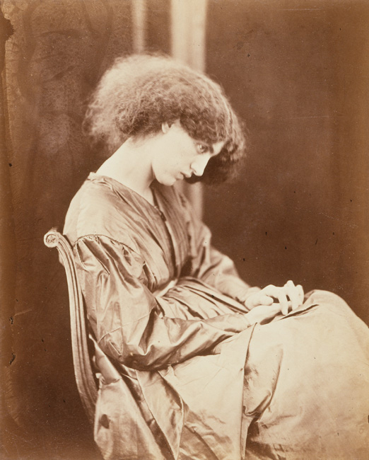 Rossetti's influence on Cameron's photographs is evident in both their subject matter and composition. The musical subject and medieval look of this photograph also characterize Rossetti's watercolor The Blue Closet.
