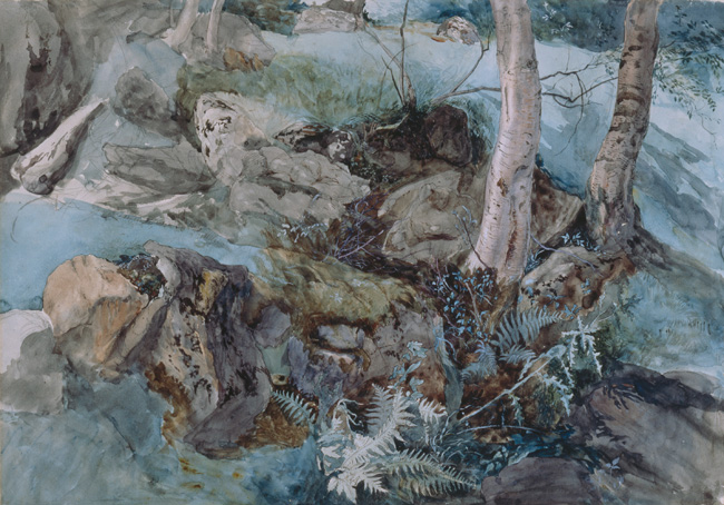 John Ruskin, British, 1819–1900, Rocks and Ferns in a Wood at Crossmount, Perthshire, 1847, pencil, ink, watercolor, and gouache on paper, Abbot Hall Art Gallery, Kendal, Cumbria, England